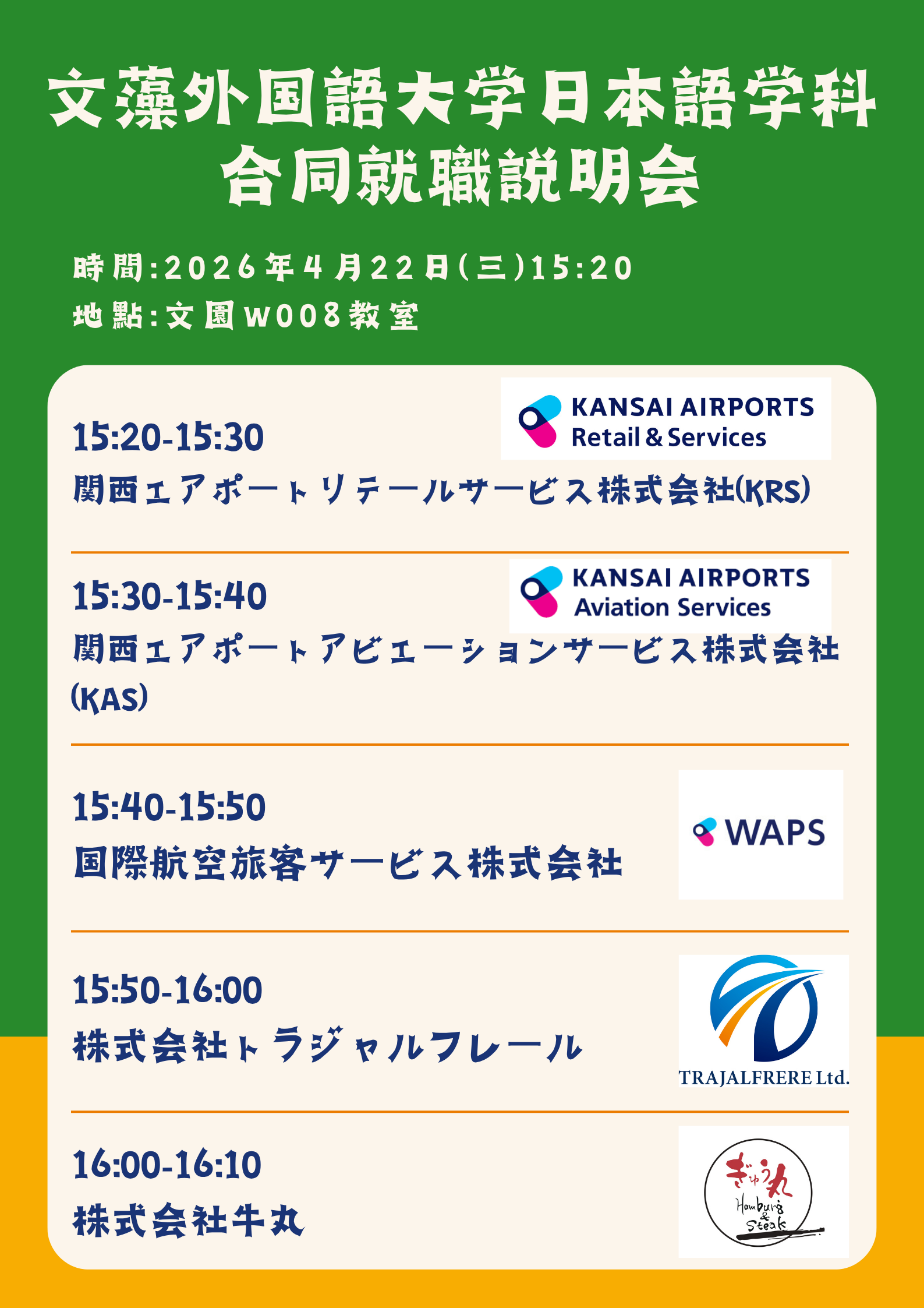 【公告】115.04.22(三)15:20「日文系聯合徵才說明會」,歡迎UJ3及YJ3同學報名參加(UJ4帶班參加)